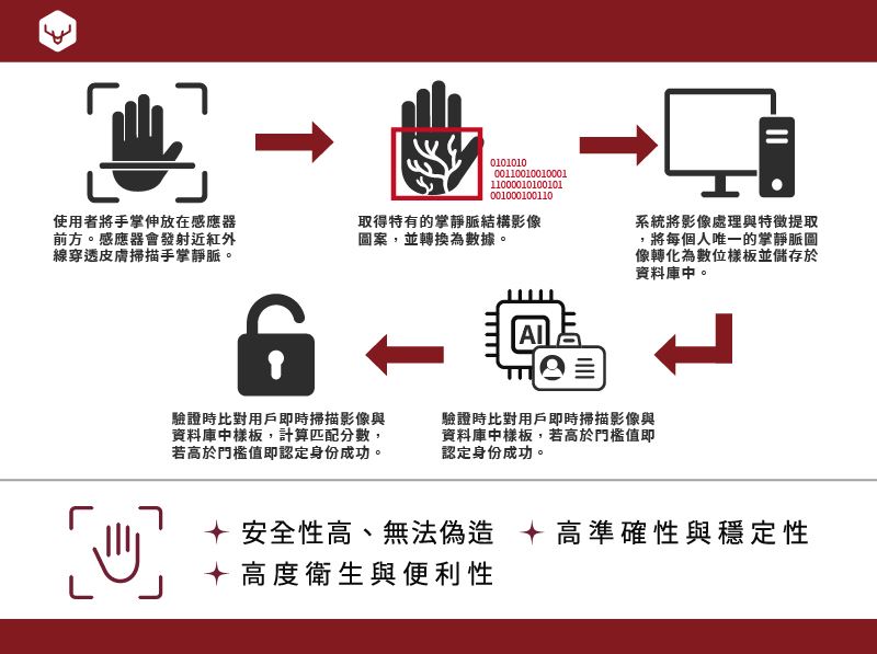 掌靜脈辨識其實已經廣泛應用於金融服務、門禁管制等領域囉! 簡單來說它是透過➡️