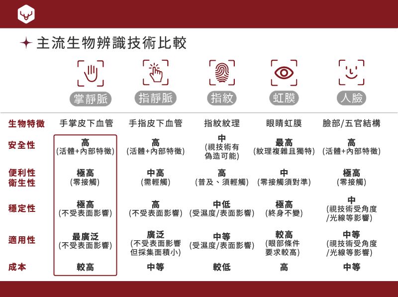 對於這些主流生物辨識技術各層面的特色