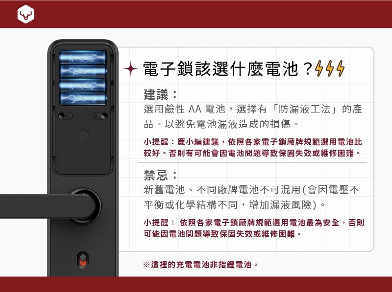 💡小提醒︰🦌鹿小編建議,依照各家電子鎖廠牌規範選用電池比較好。
