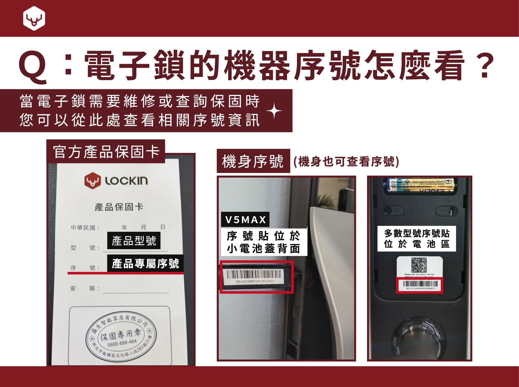 當電子鎖需要維修或查詢保固時,您可以從此處查看相關序號資訊👇👇