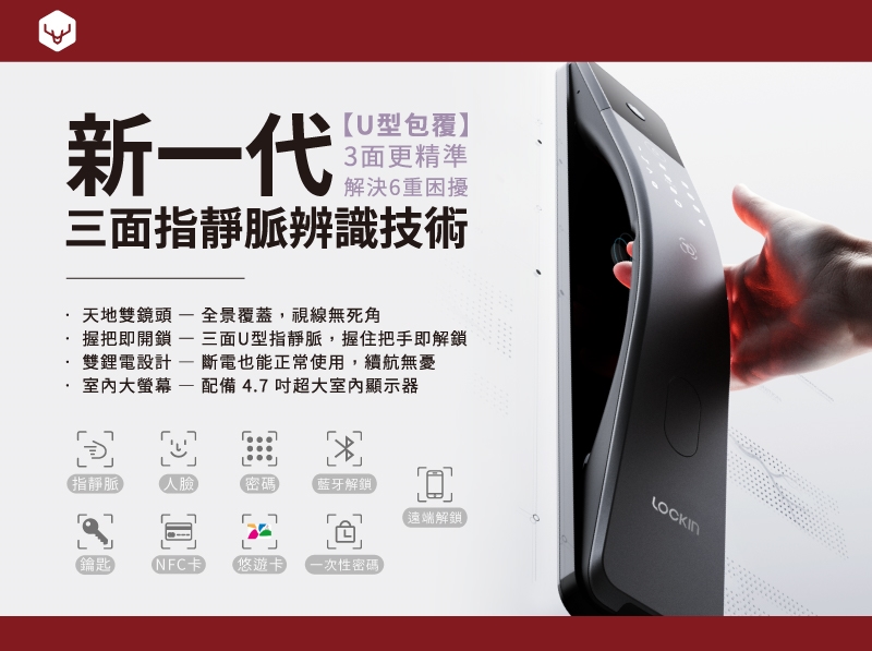 傳統指紋辨識常受限於手指乾濕、指紋淺或髒污,而 Lockin Halo 採用的「三面指靜脈辨識技術」,則將生物辨識提升到了全新高度。