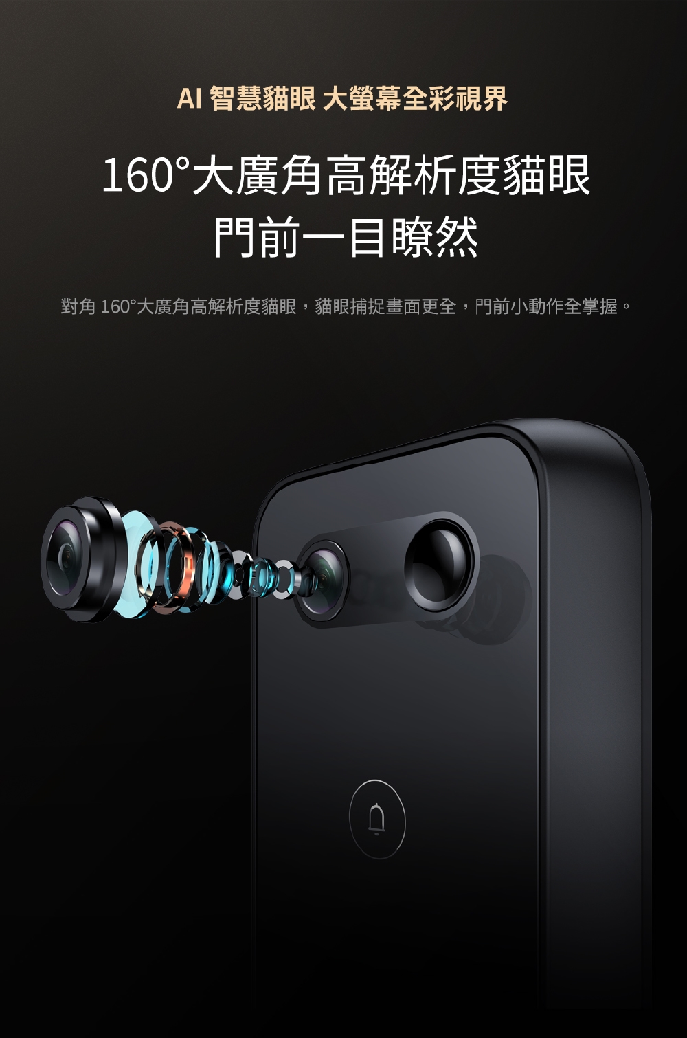 AI智慧貓眼:160度大廣角貓眼視野。