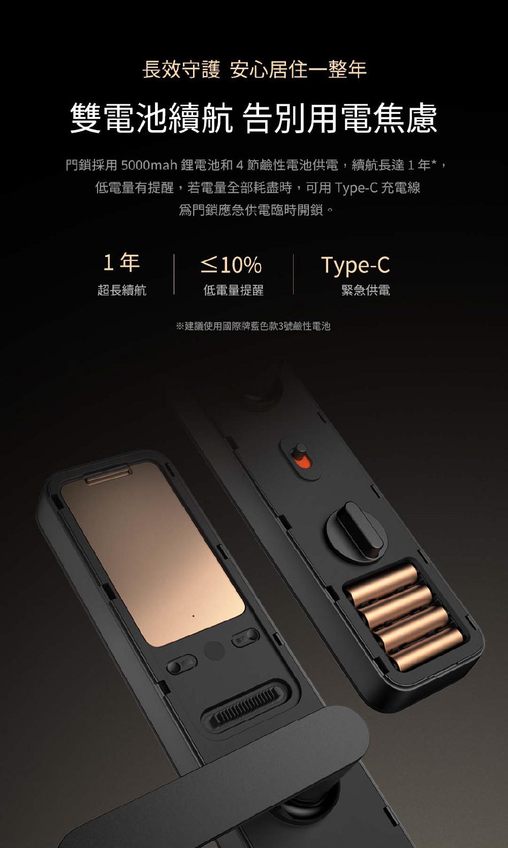 雙電池續航:鋰電池+鹼性電池,雙電池系統,續航更有力。
